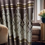 Custom Curtains Brown Beige Striped with Damask Pattern, Luxury Bohemian Home Decor Style