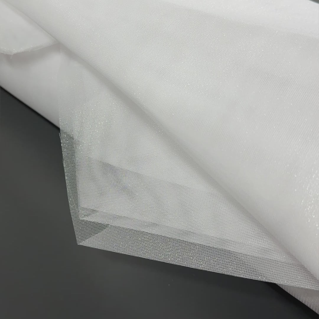 Unit price perWhite voile mesh curtains with a lurex shimmering surface. Custom curtains are made of high-quality curtain fabric. For the best view, we recommend assembling this fabric 2.5 times the width of the window rod. Curtains are used for a bedroom, children's room, kitchen, living room, and home office.